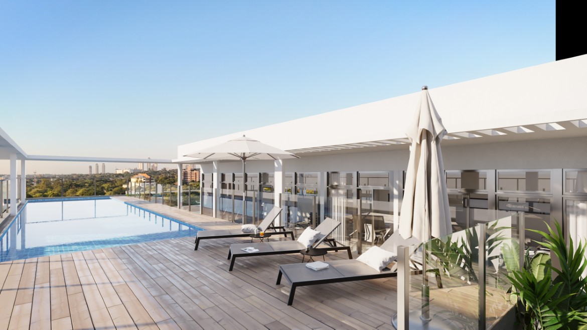 Edificio de 54 departamentos en 6 niveles, en el barrio Bella Vista a 1 cuadra del club Centenario. Con terminaciones de primer nivel.